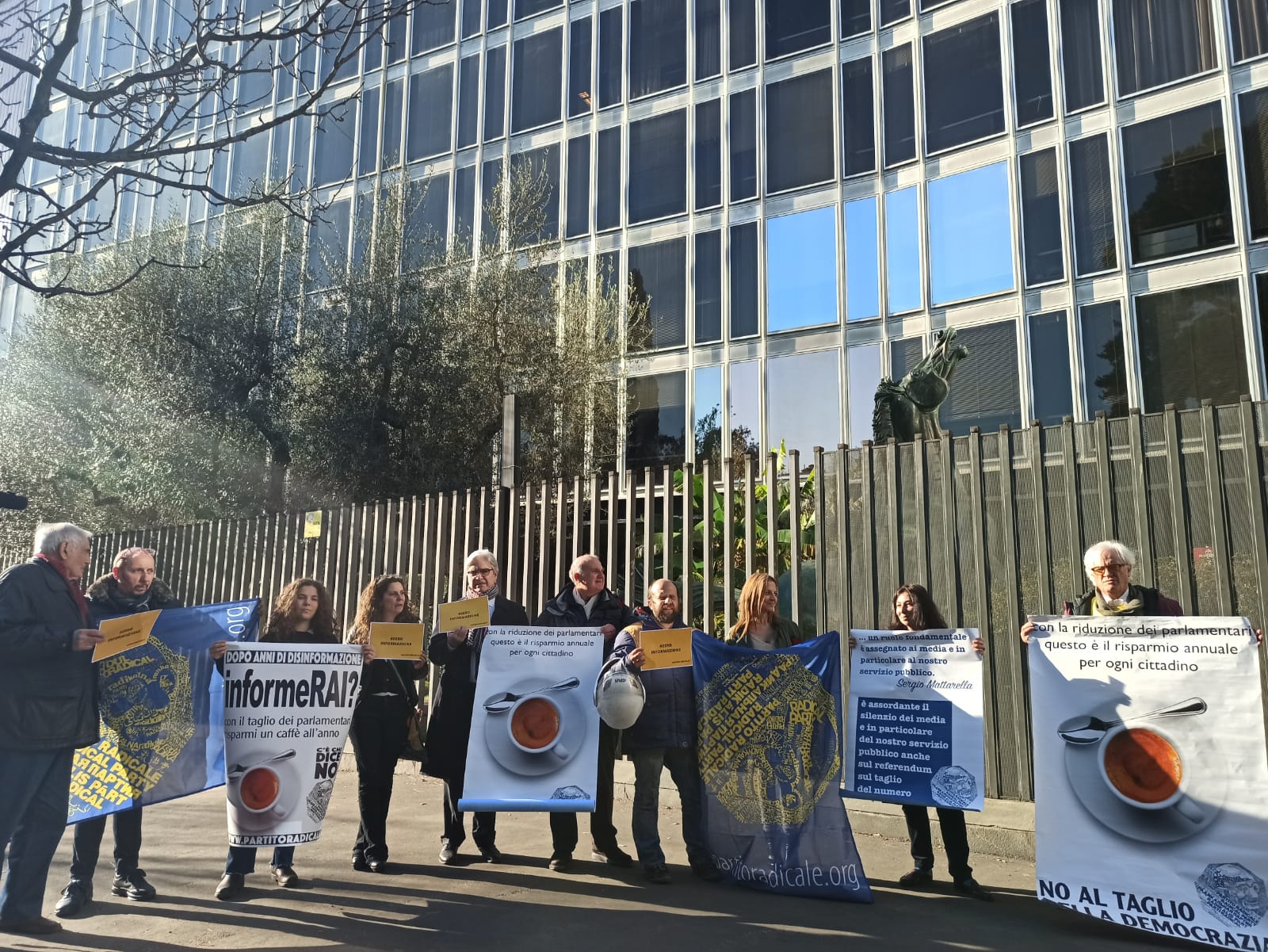 militants of the Radical Party demonstrated in front of the RAI headquarters