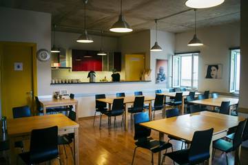 accommodate up to 50 people, a cafeteria with healthy food and diet-friendly