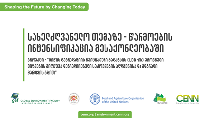 The Project “Achieving Land Degradation Neutrality Targets of Georgia through Restoration and Sustainable Management of Degraded Pasturelands” is initiated by the Ministry of Environmental Protection and Agriculture of Georgia and is financed by Global Environment Facility (GEF). The project is implemented by Food and Agriculture Organization of the United Nations (FAO). An executive organization is the Regional Environmental Centre for the Caucasus (REC Caucasus). Project partner CENN.