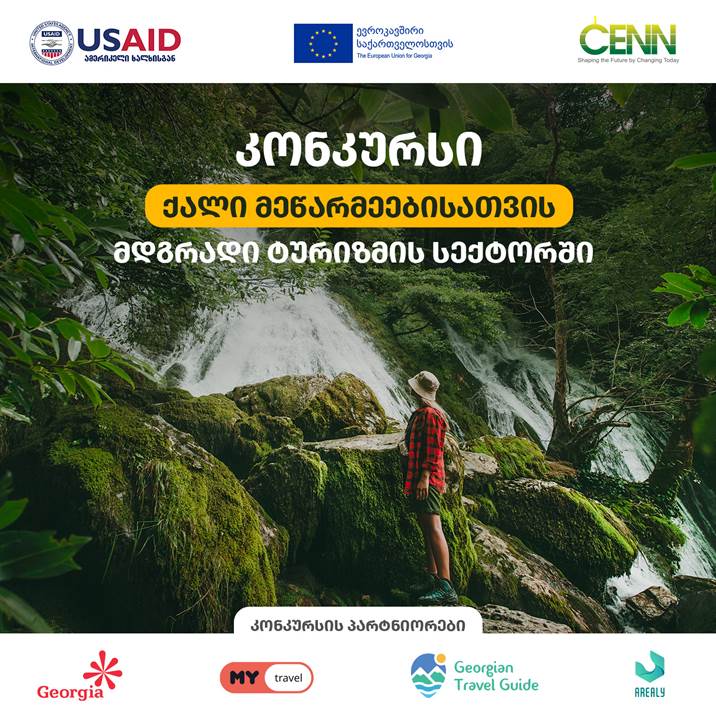 CENN, პროექტის "ციფრული კავკასია" ფარგლებში, საქართველოს ეროვნულ ტურიზმის ადმინისტრაციასთან (GNTA), Mytravel.ge-სთან, Georgian Travel Guide-თან და Area.ly-სთან პარტნიორობით აცხადებს კონკურსს საქართველოს ტურიზმის სექტორში მოღვაწე ქალი მეწარმეებისათვის.