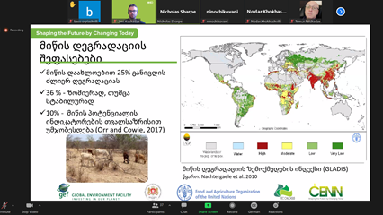 On March 10, 2022, CENN hosted an online workshop on LDN Oriented Sustainable Pasture Management within the project “Achieving Land Degradation Neutrality Targets of Georgia through Restoration and Sustainable Management of Degraded Pasturelands” funded by the Global Environment Facility (GEF).