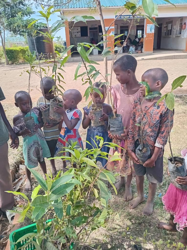 In the photos, this was on the 9th of December 2025, Greening Uganda field forest technicians commissioning and planting fruit trees in Bunambutye Landslide Victims Resettlement Camp. To reduce mortarlity of the planted FRUIT Trees, we have provided aqua soil, training on management with bottle drip irrigation & mulching.