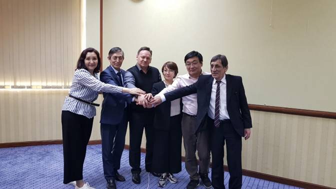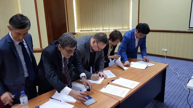 На подписании меморандума о сотрудничестве в рамках Климатической Сети общественных организаций Центральной Азии: Саидрасул Сангинов- Экодвижение Узбекистана, Тимур Алиев- Общество охраны природы Туркменистана, Юрий Скочилов- Климатическая Сеть TajCN Таджикистана, Абдурасулова Нурзат- Климатическая сеть Кыргызстана, Вадим Ни- ЭкоФорум Казахстана.