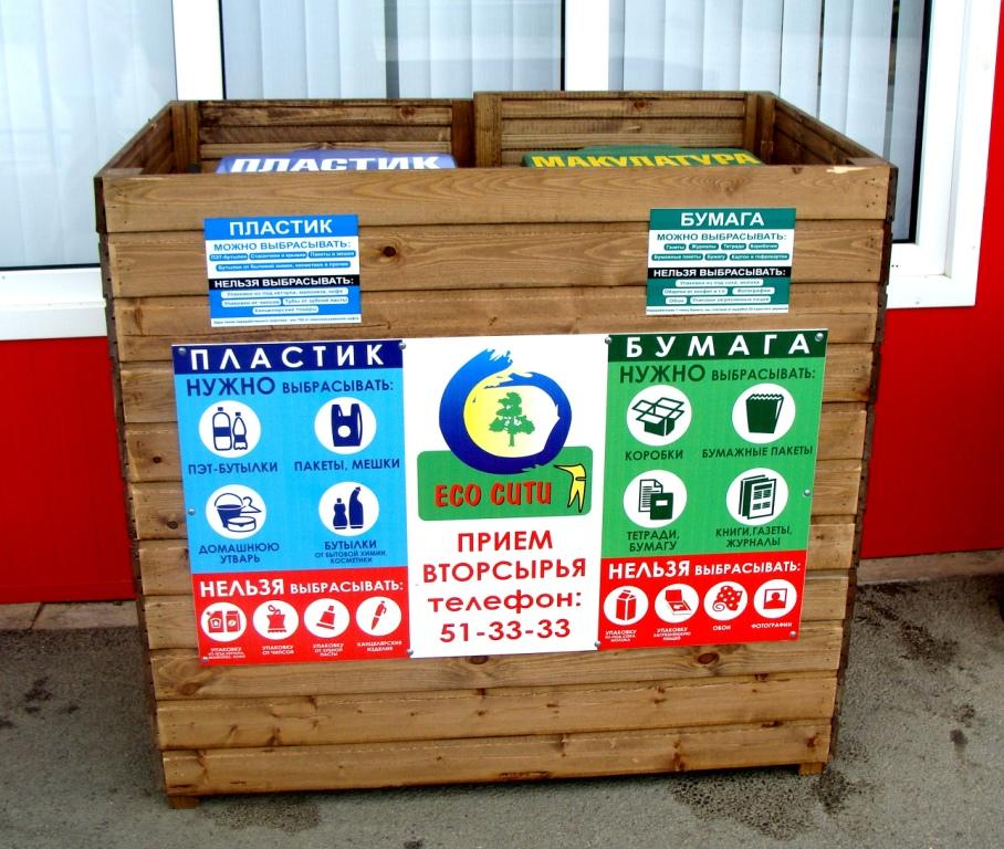 контейнеры для сбора пластиковых и бумажных отходов. А у нас как раз