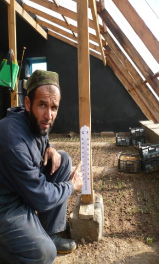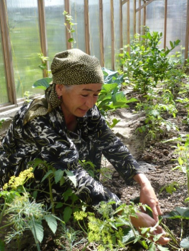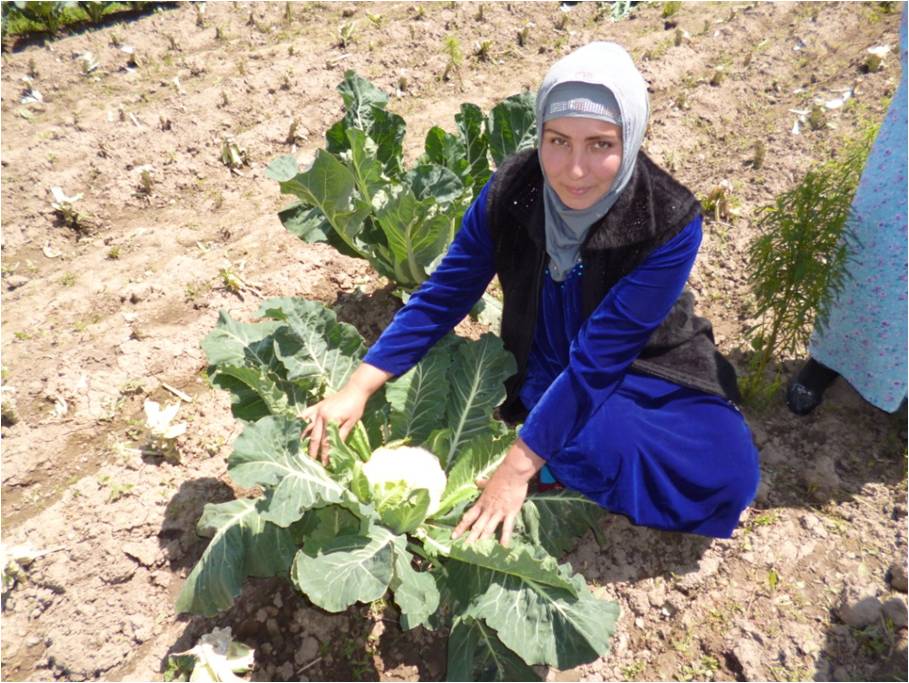На фото креативные фермеры из Таджикистана -Бозорова Хафиза, Ахмедова Мавлюда, Юсупов Комил использующие адаптационные технологии на своих участках