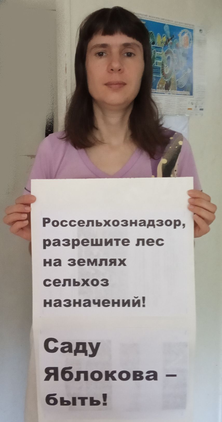 В то же время хочу уточнить, что ЯблоковСад — это даже не лесосад, а именно сад, в отношении которого творится беспредел со стороны надзирающих органов с целью, как мы полагаем, отнять участок в пользу другого физического лица. На Вашем плакате две, не связанные в данный момент темы (хотя стратегически связаны).