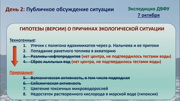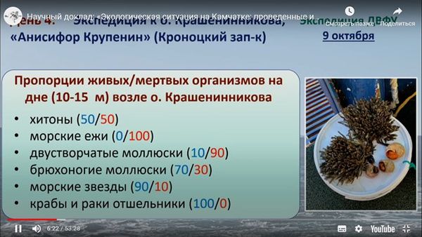 Сегодня Ученый совет ДВФУ (Дальневосточный федеральный университет, Владивосток) заслушал доклад заведующего лабораторией экологии и эволюционной биологии водных организмов ДВФУ Кирилла Винникова о причинах массовой гибели морских организмов у берегов Камчатки в сентябре-октябре 2020 года.