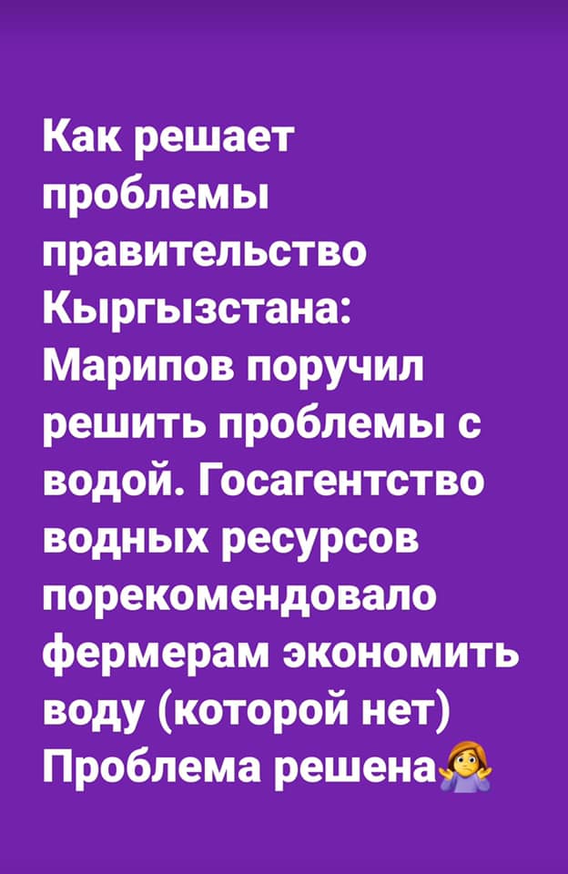 Как точно подгадали с заявлениями к 17му июня – Всемирному Дню Борьбы с опустыниванием и засухой официальные лица Кыргызстана: Пред Каб мина Марипов и Агентство по водным ресурсам (см приложение).