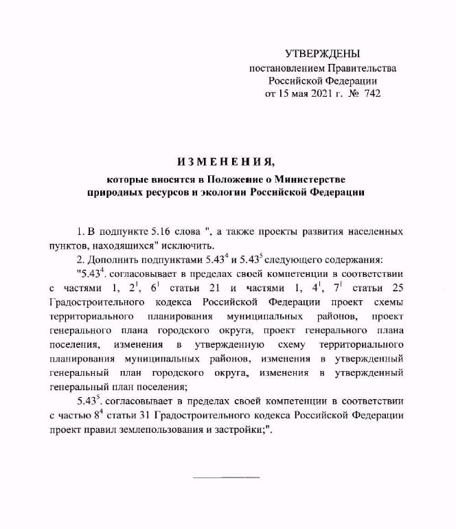 Минприроды будет вполне официально согласовывать схемы терпланирования, а также правила землепользования и застройки (ранее это делалось по инициативе заинтересованных федеральных и региональных органов власти). Подчинённые министра Александра Козлова будут проверять корректность отображения водоохранных зон, месторождений полезных ископаемых, границ земель лесного фонда, особо охраняемых природных территорий.