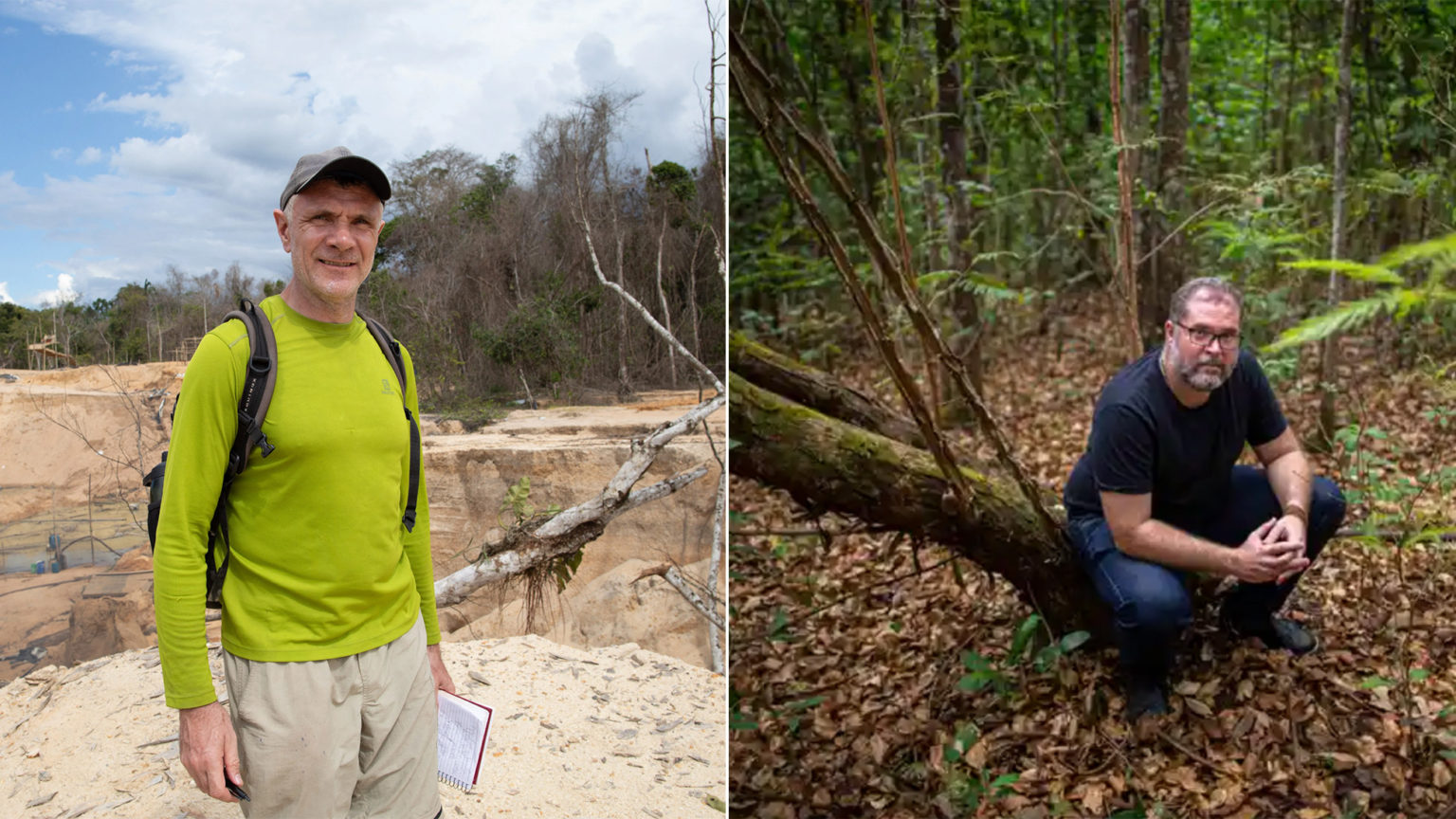 The murders of British journalist Dom Phillips (left) and Indigenous advocate Bruno Pereira (right) in the Brazilian Amazon are emblematic of the plight of journalists and activists across Latin America as violence escalates in the region. Composite: Joao Laet/AFP/Getty Images (left); Daniel Marenco/Agencia O Globo (right).