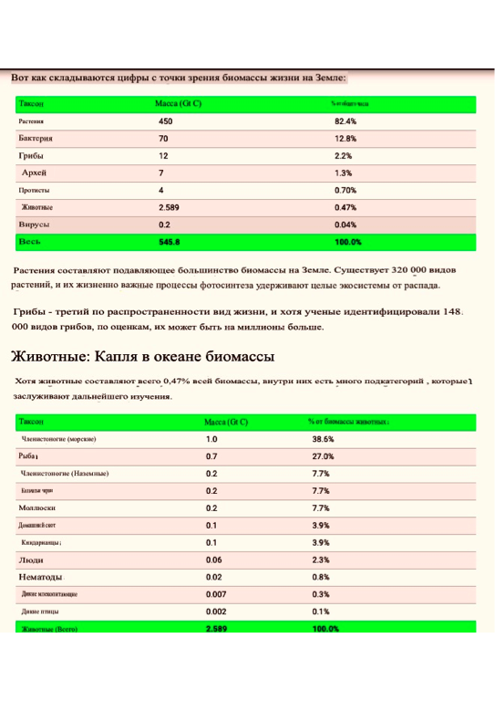 чтобы разбить общий состав живого мира с точки зрения его биомассы и того,