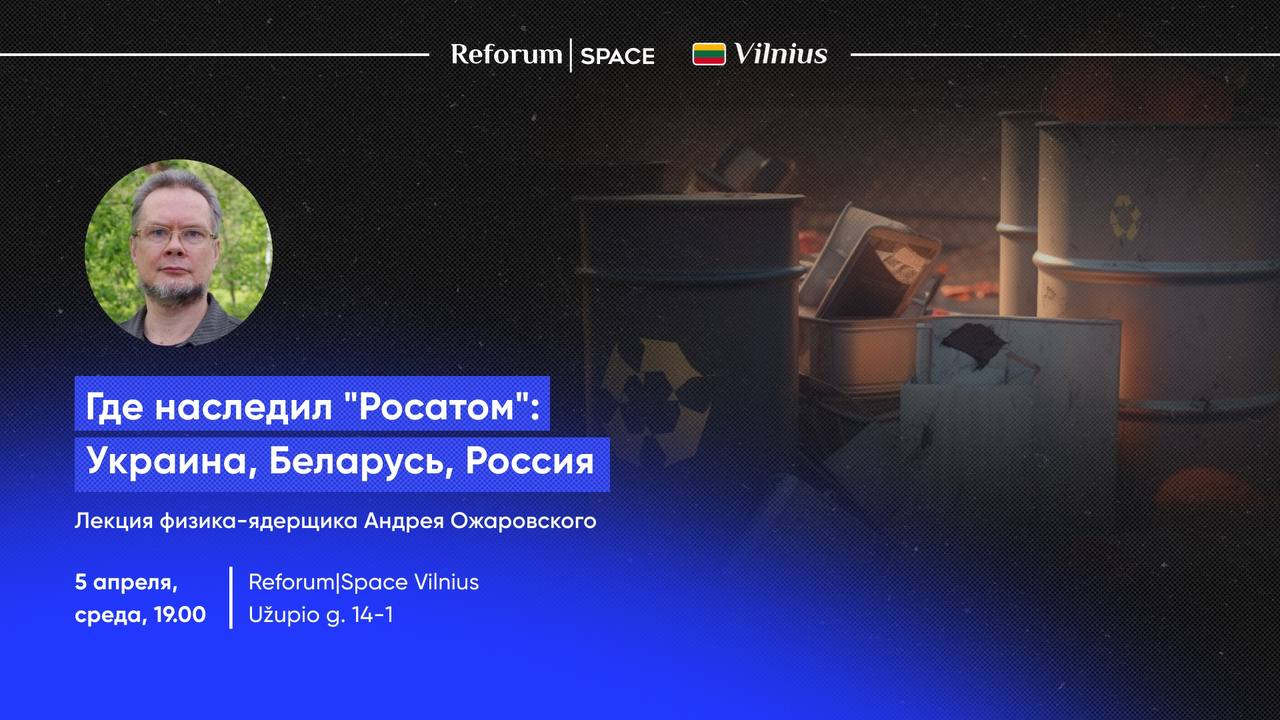 5 апреля в 19:00 Андрей Ожаровский, физик-ядерщик, эксперт программы «Безопасность радиоактивных отходов» выступит в Reforum Space Vilnius (Užupio g. 14) с лекцией «Где наследил "Росатом": Украина, Беларусь, Россия». Лекция организована совместно с одной из старейших беларусских экологических организаций «Экодом». Вход бесплатный, регистрация не требуется. Российская ядерная госкорпорация не может похвастаться безупречной репутацией. В Украине ее сотрудники работают на Запорожской АЭС, которую захватила российская армия. Украинские власти и общественность неоднократно призывали наложить на «Росатом» санкции за соучастие в оккупации. В Беларуси российская госкорпорация построила АЭС с таким количеством нарушений, что их пришлось исправлять уже после официального запуска, из-за чего она больше простаивает, чем работает. От Вильнюса до этой АЭС рукой подать – Лукашенко возвел ее у самой границы, всего в 40 км от литовской столицы. Да и в самой России участков радиоактивного загрязнения хватает, причем связаны они не только с самыми известными авариями в Чернобыле в 1986 году и Челябинске-40 в 1957 году, а с обычной практикой «Росатома» работать грязно, мало заботясь о безопасности окружающих. Помимо подробного рассказа о том, где успели наследить российские атомщики, и что с этим делать, Андрей Ожаровский продемонстрирует приборы, с помощью которого он и другие активисты находят и фиксируют участки радиоактивного загрязнения. Вы сможете подержать их в руках и задать эксперту любые интересующие вас вопросы.
