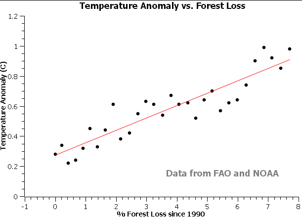 Colleagues, I have been searching from data about the correlation between forest loss and global warming. It wasn't easy to find the data and, eventually, I asked ChatGPT, which provided the data nicely arranged in two columns. I know that chatGPT is not very reliable and I couldn't find these data in the FAO site -- they are well hidden, evidently. But, the data make sense if compared with the mongabay data. https://rainforests.mongabay.com/general_tables.htm