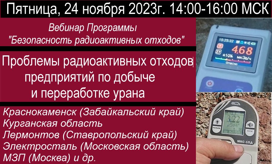 *[Enwl-inf] <rseu_conference> 24 ноября вебинар Проблемы радиоактивных отходов предприятий по добыче и переработке урана