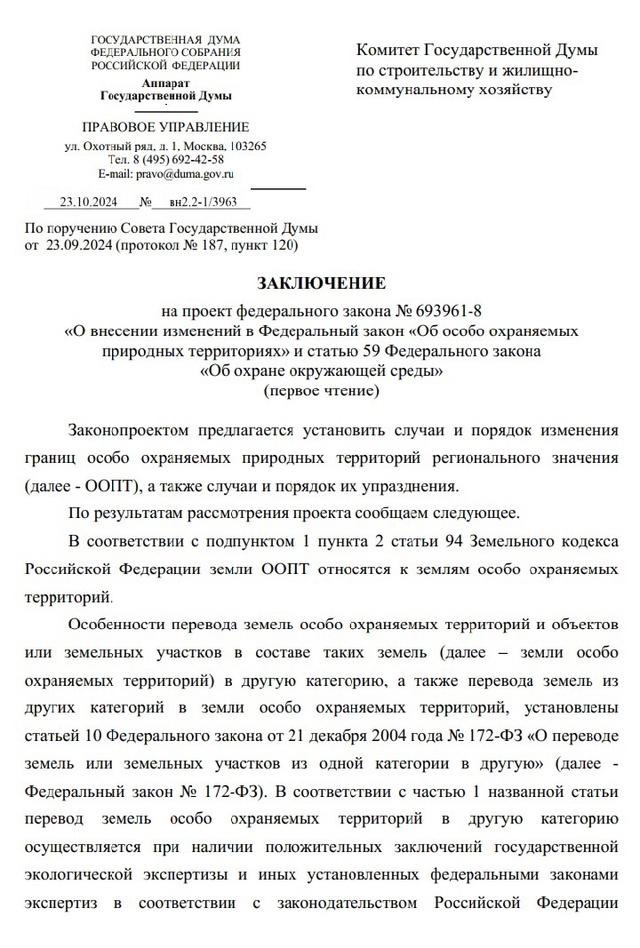 Subject: на проект ФЗ №693961-8 Правовое управление Госдумы