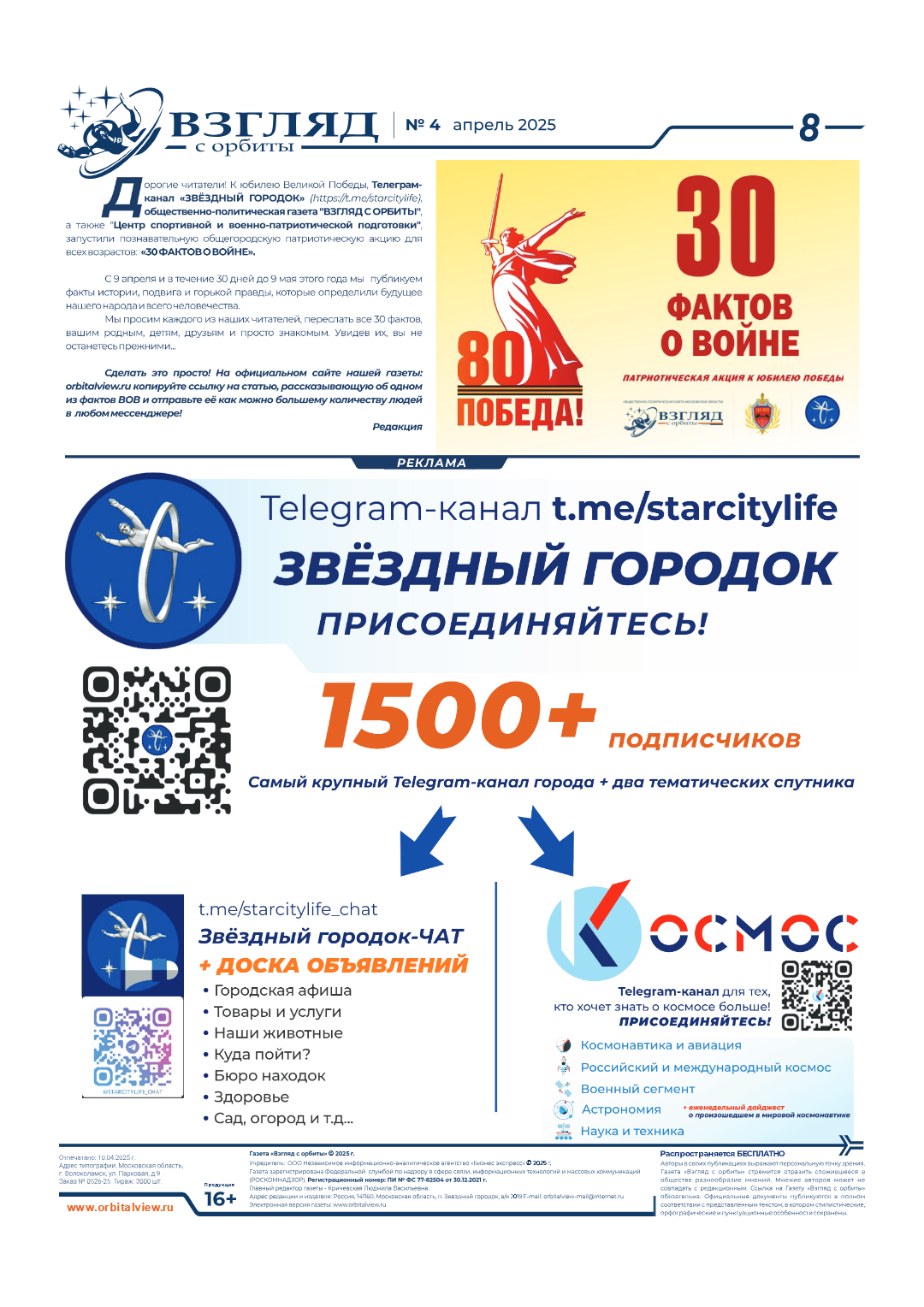 Взгляд с орбиты. Общественно-политическая газета Московской области.