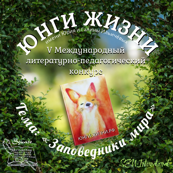 Также приглашаю всех желающих экологов принять участие в юбилейном V сезоне конкурса «Юнги Жизни». До 1 декабря принимаются литературные, графические, фото- и видео-работы на тему «Заповедники мира». Положение о конкурсе можно скачать в группе МОО Союза писателей России или на сайте ЮНГИ-ЖИЗНИ.РФ
