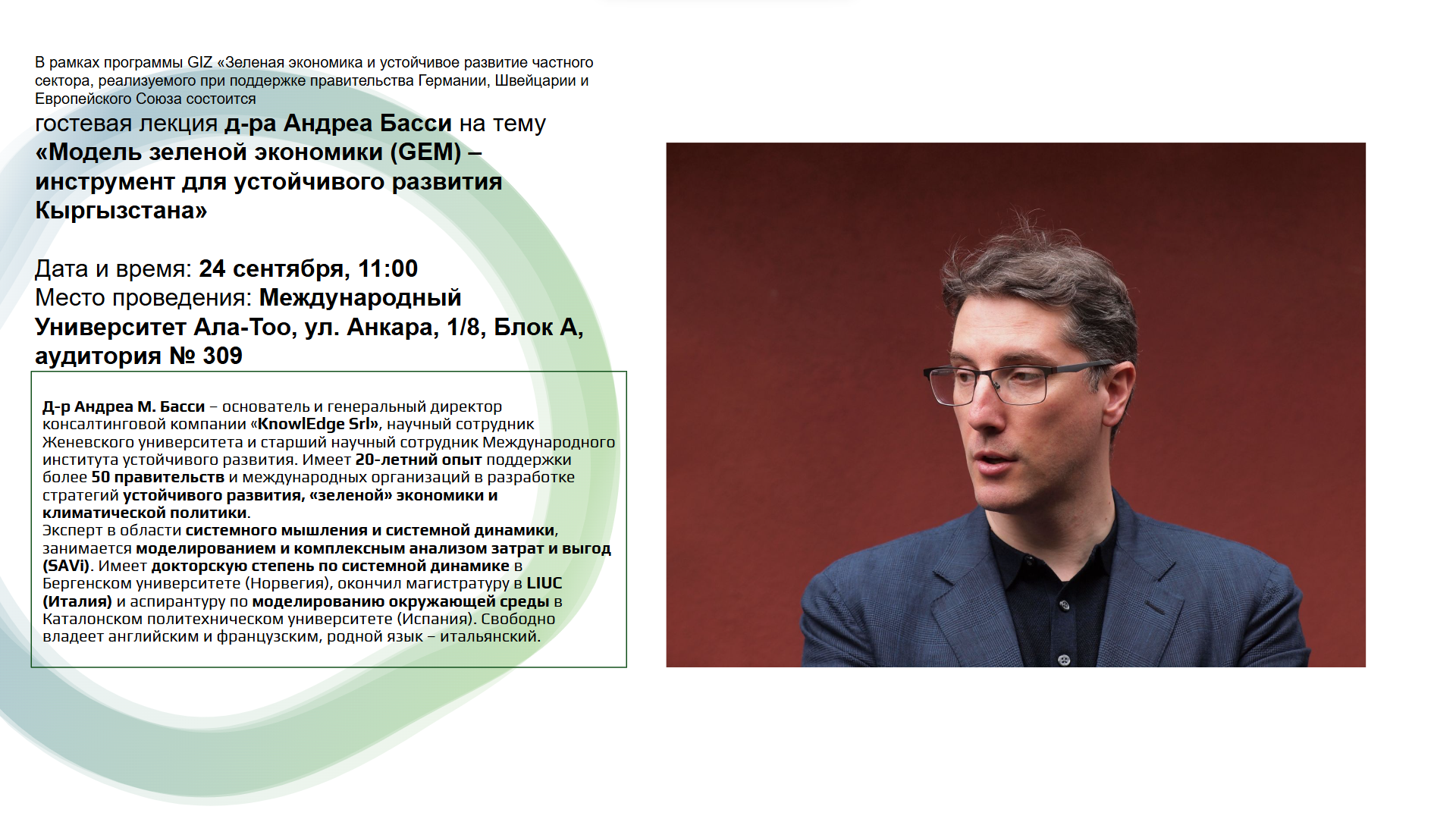 *[Enwl-Inf] Приглашение на гостевую лекцию д-ра Андреа Басси на тему «Модель зеленой экономики (GEM) – инструмент для устойчивого развития Кыргызстана»