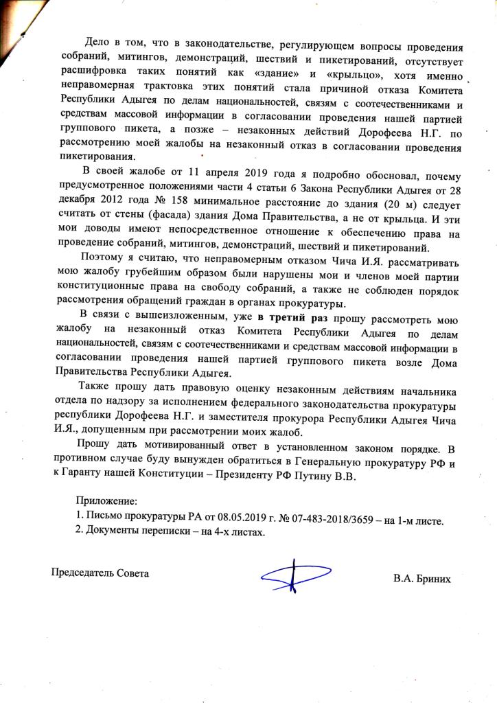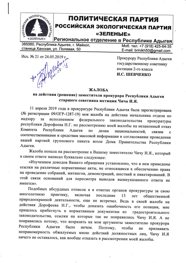 теперь уже на незаконное бездействие прокурора Республики Адыгея Шевченко