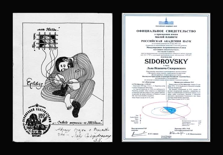 Да, в питерском Институте прикладной астрономии мне торжественно вручили «Официальное свидетельство» Российской Академии наук о том, что на основании решения Международного Астрономического Союза со штаб-квартирой в Кембридже (США) малой планете под № 11792 присвоено имя SIDOROVSKY.