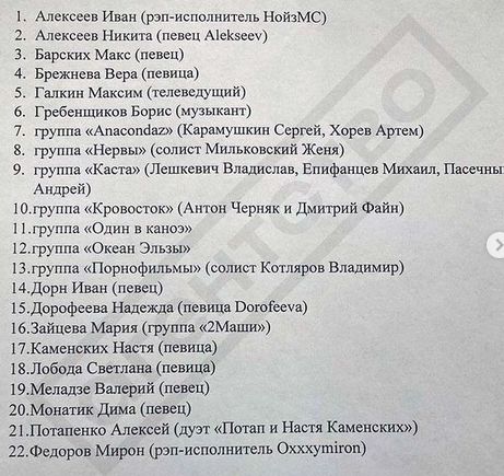 Кроме антивоенного списка, собственный перечень нежелательных музыкантов 4