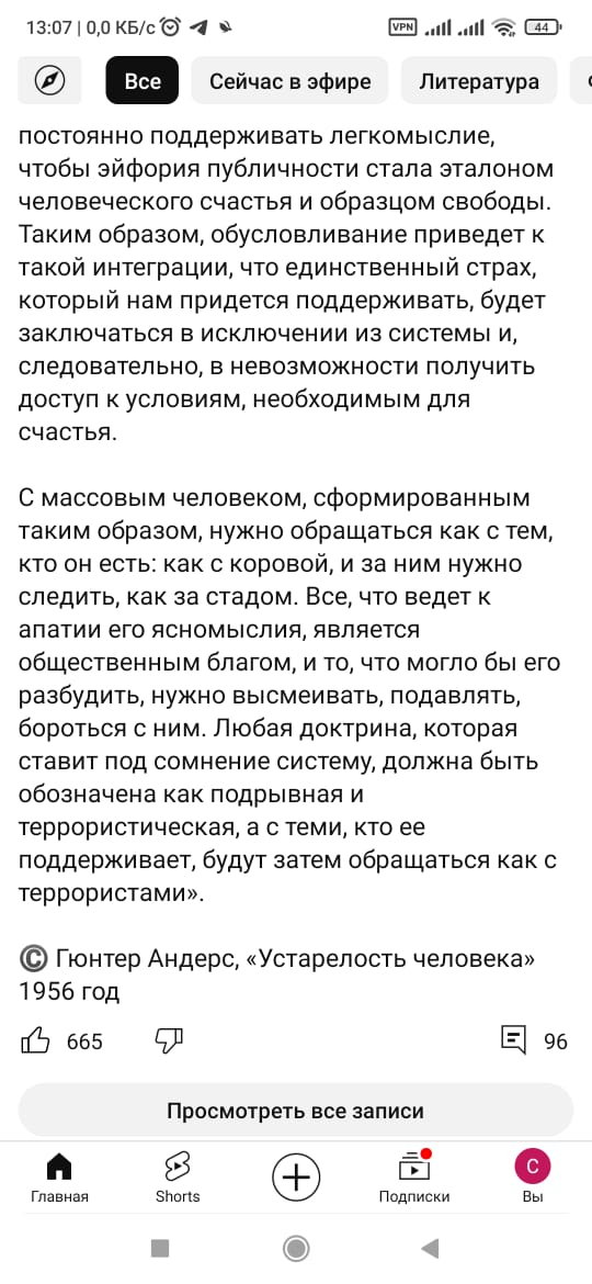 Философ Гюнтер Андерс написал следующее пророческое размышление...