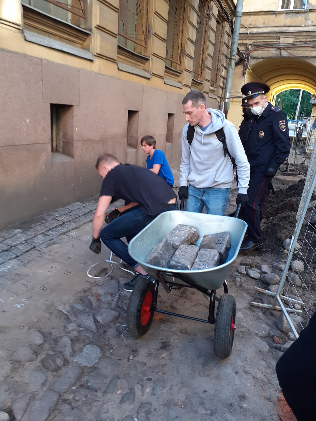 представитель КГИОП на объект также не подъехал. Мощение разобрали полностью