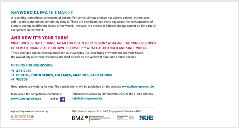 the association elements. Education and culture in the One World e.V. calls up for the competition "The climate change at our doorstep".
