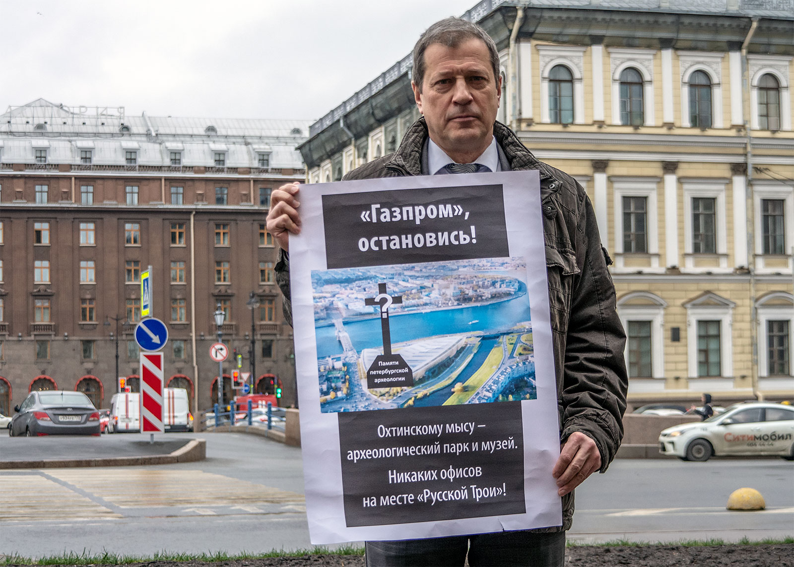 Жители Петербурга продолжают акцию в защиту памятников Охтинского мыса. Они фотографируются на фоне городских панорам с требованиями к Газпрому отказаться от планов возведения офисных зданий на месте археологического комплекса и сохранить «Русскую Трою». Сегодня участников акции поддержали депутаты Законодательного собрания Санкт-Петербурга: Максим Резник, Борис Вишневский, Алексей Ковалев, Ирина Иванова.