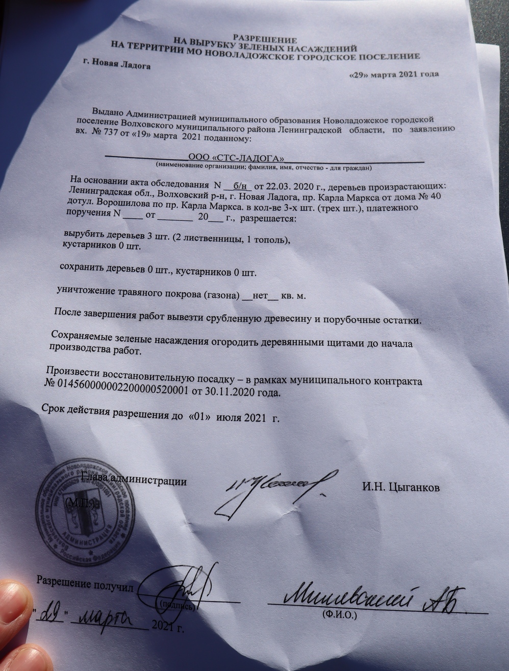 лиственницы на проспекте. Однако мэр Новой Ладоги Игорь Цыганков выдал