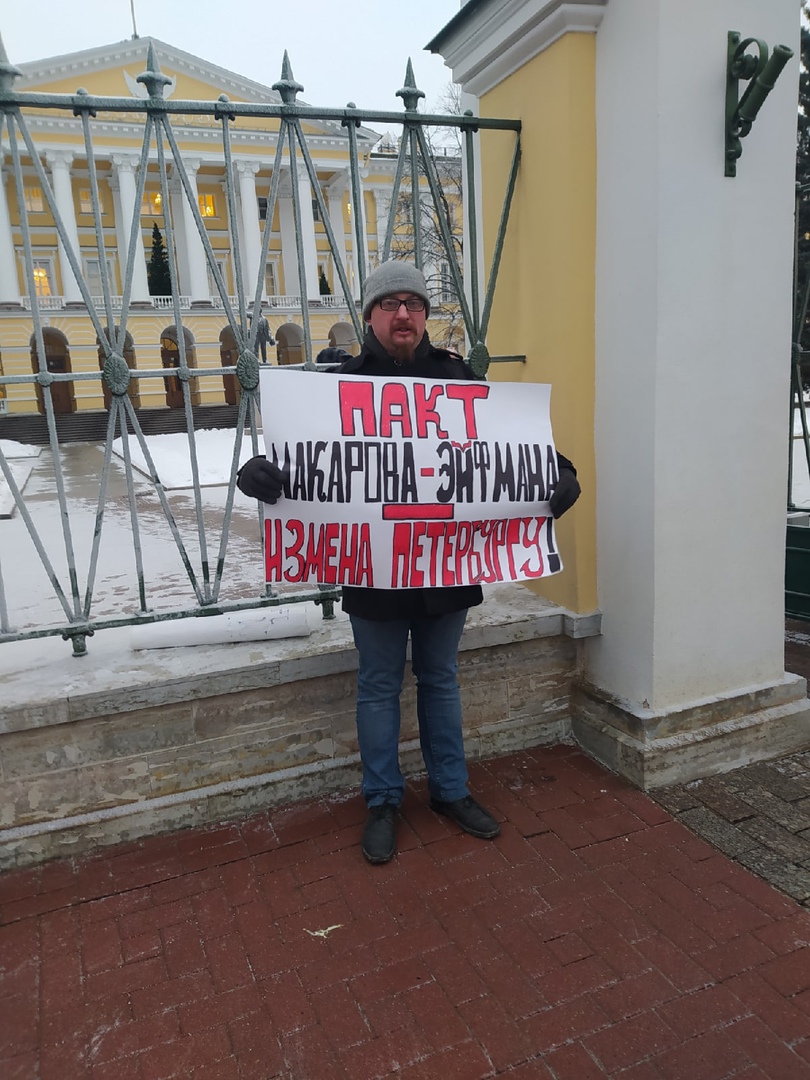 С 8 утра 12 января перед Смольным стартовали одиночные пикеты в защиту