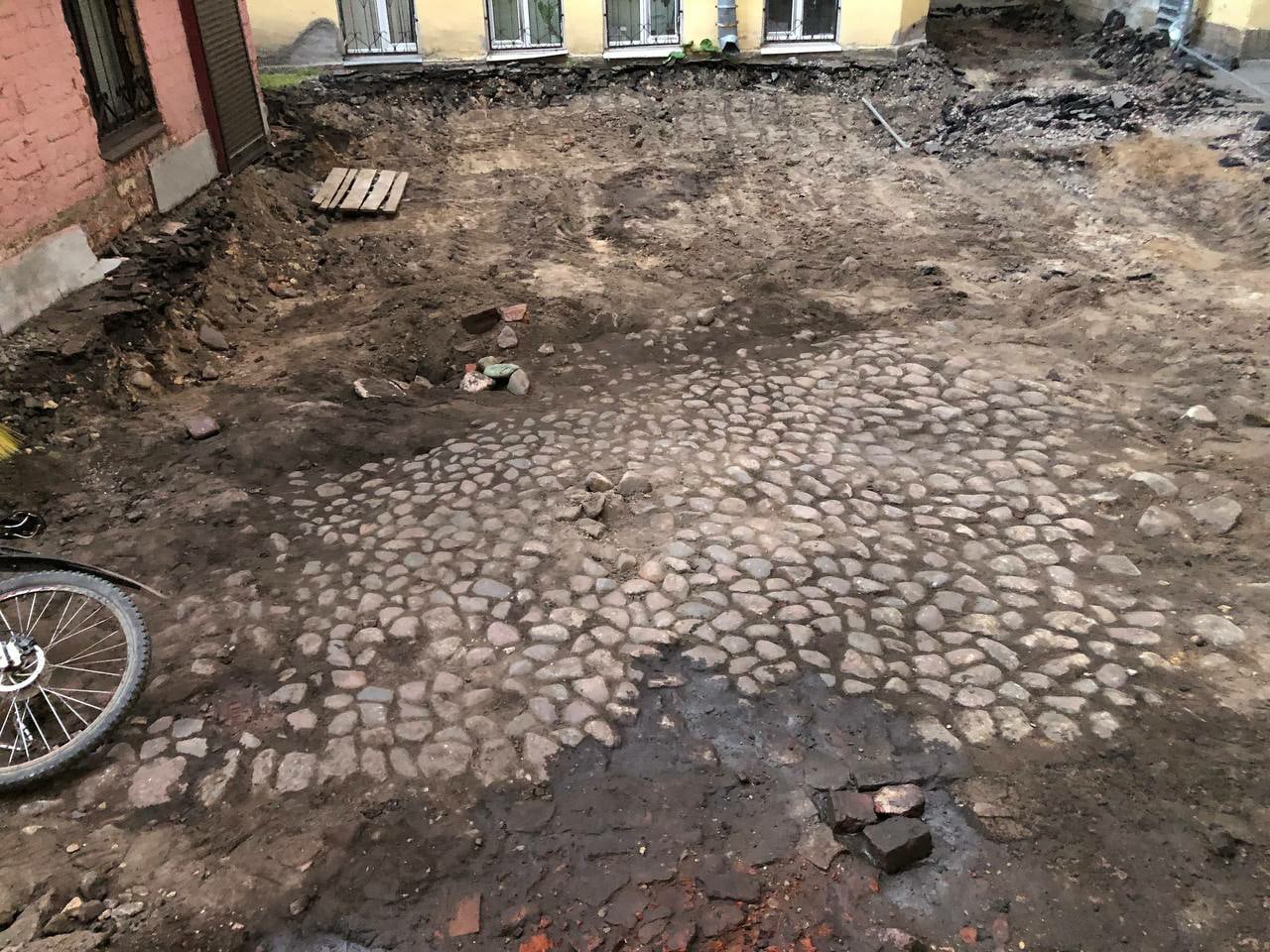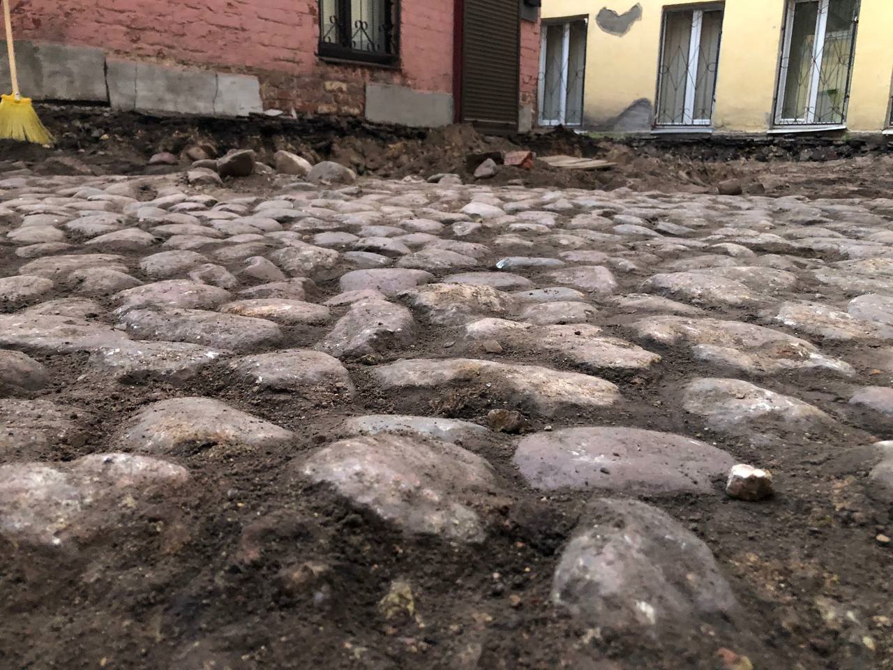 ул., 18 обнаружено сохранившееся историческое булыжное мощение. Активисты