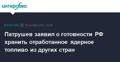 *[Enwl] Патрушев заявил о готовности РФ хранить отработанное ядерное топливо из других стран