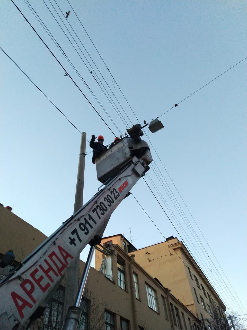 Компания "Ленсвет" переносит провода со зданий на временную схему,