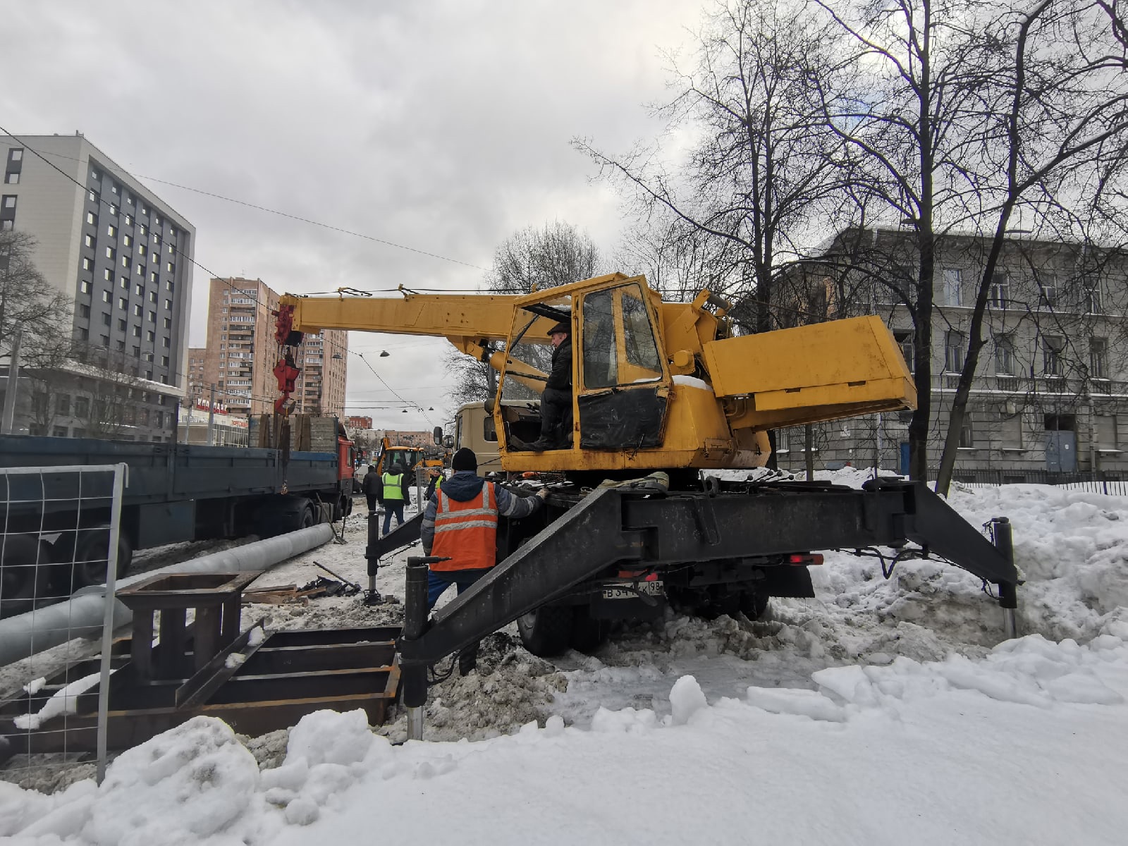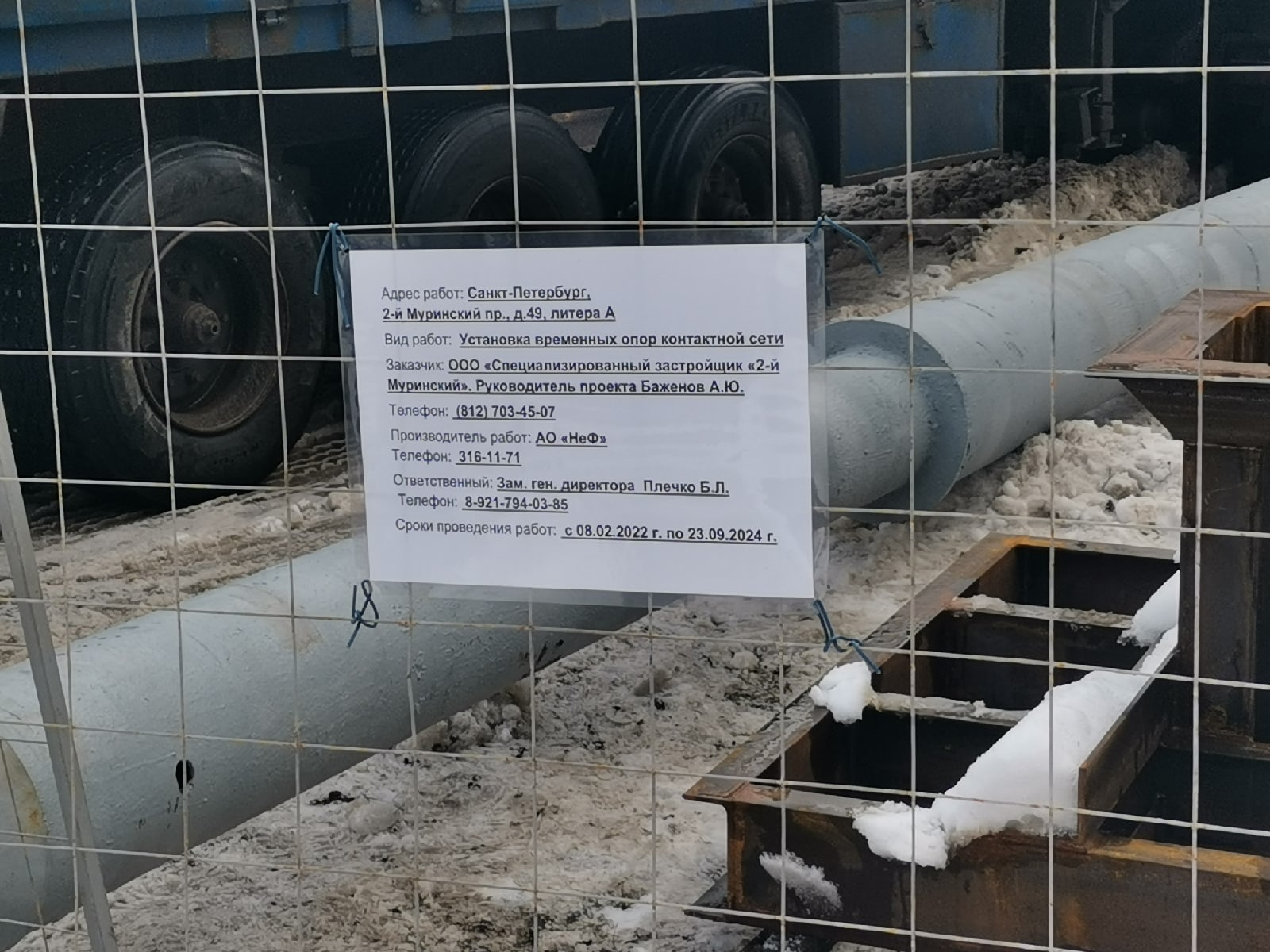 рабочих нет надлежащего ограждения и щита. Сейчас застройщик пытается