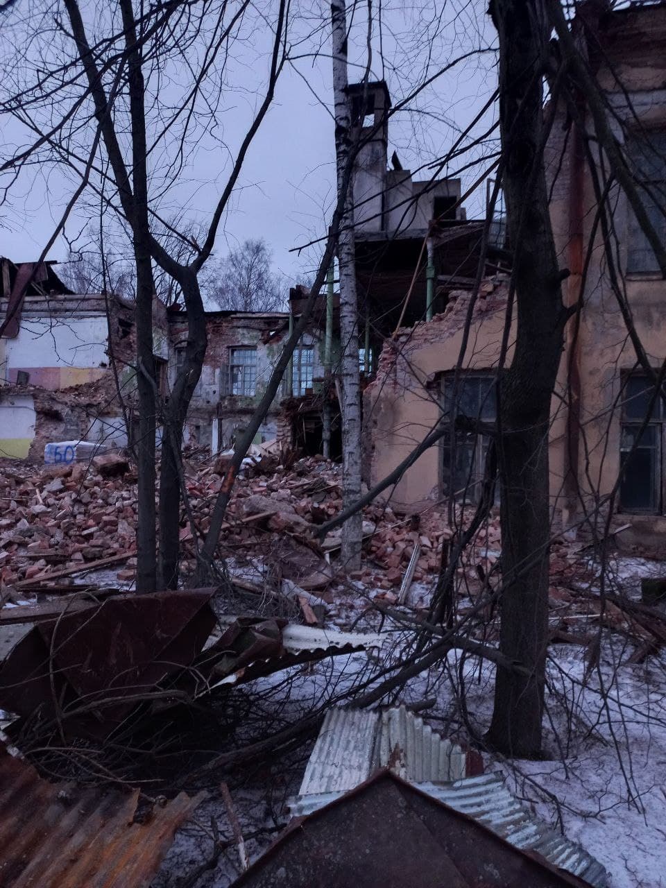утро понедельника, 21 февраля, экскаватором и манипулятором разрушены
