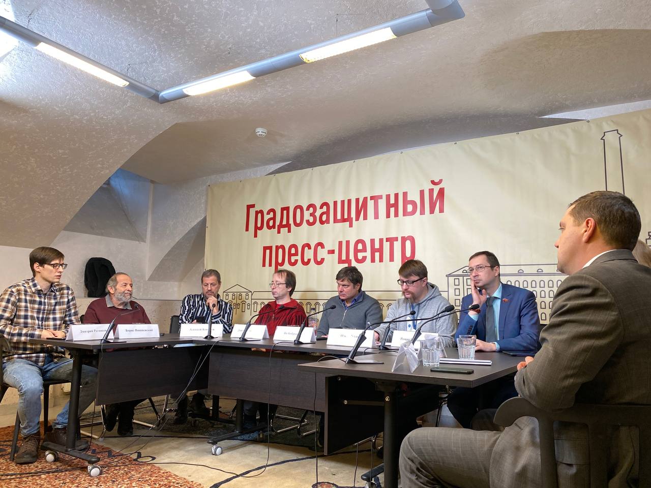 В круглом столе приняли участие депутаты Законодательного собрания Борис Вишневский (Яблоко), Роман Кононенко (КПРФ), Андрей Малков (ЛДПР), координатор “Живого города” Дмитрий Литвинов, член штаба ОНФ Олег Ларионов, один из идеологов градозащиты Алексей Ковалев, зампред “Старого Петербурга” Александр Кононов, редактор издания “Канонер” Дмитрий Ратников. Вел директор фонда “Голодай” Олег Мухин.