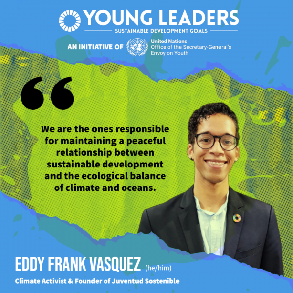 Eddy Frank Vásquez-Sánchez is a youth climate and oceans advocate from the Dominican Republic. As a psychologist Eddy has helped promote youth participation within climate action and oceans conservation.