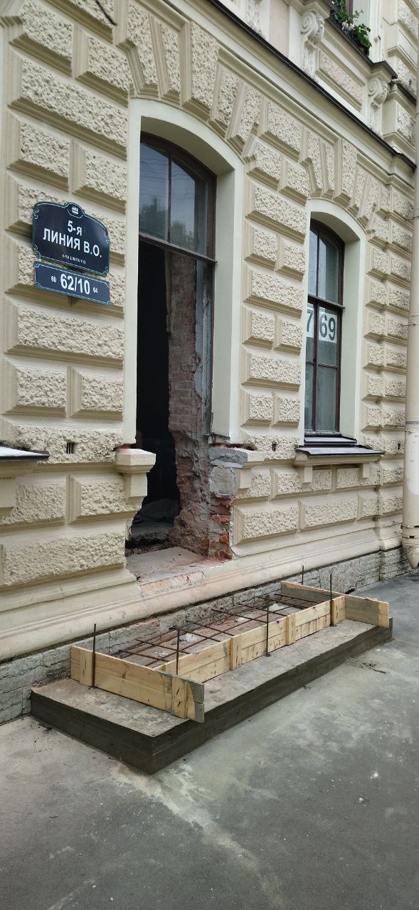 (угол с 5-й линией). Собственник помещения на 1-м этаже незаконно прорубает