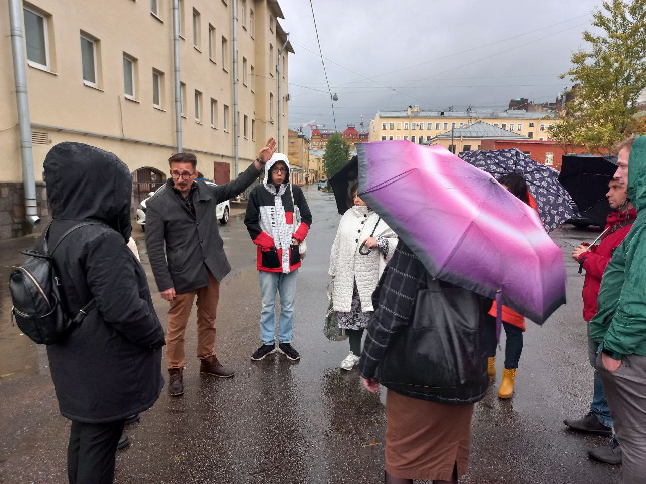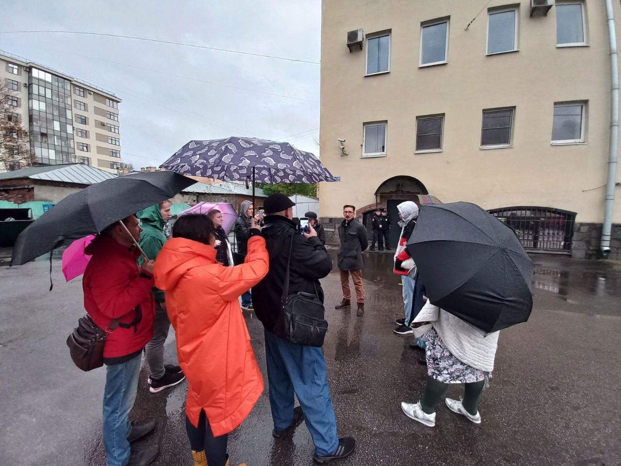 Пообщаться с жителями (на видео) попытался гражданин, отказавшийся называть свое имя, в котором, впрочем, присутствующие узнали представителя застройщика ЛСР. Сначала господин сыпал вопросами “нравится ли вам этот дом?” и “даже сейчас, когда мы уже снесли верхний этаж?”. На это жители отвечали утвердительно. Затем на вопрос, гарантирует ли застройщик, что соседние исторические здания, стоящие вплотную, и уже покрывшиеся трещинами, не рухнут, товарищ ответил философски: “Гарантию даже Господь Бог не даст”.