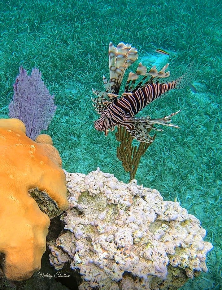 Фото рыбы-крылатки сделано 22 мая 2024 года у кораллового рифа Кубы.