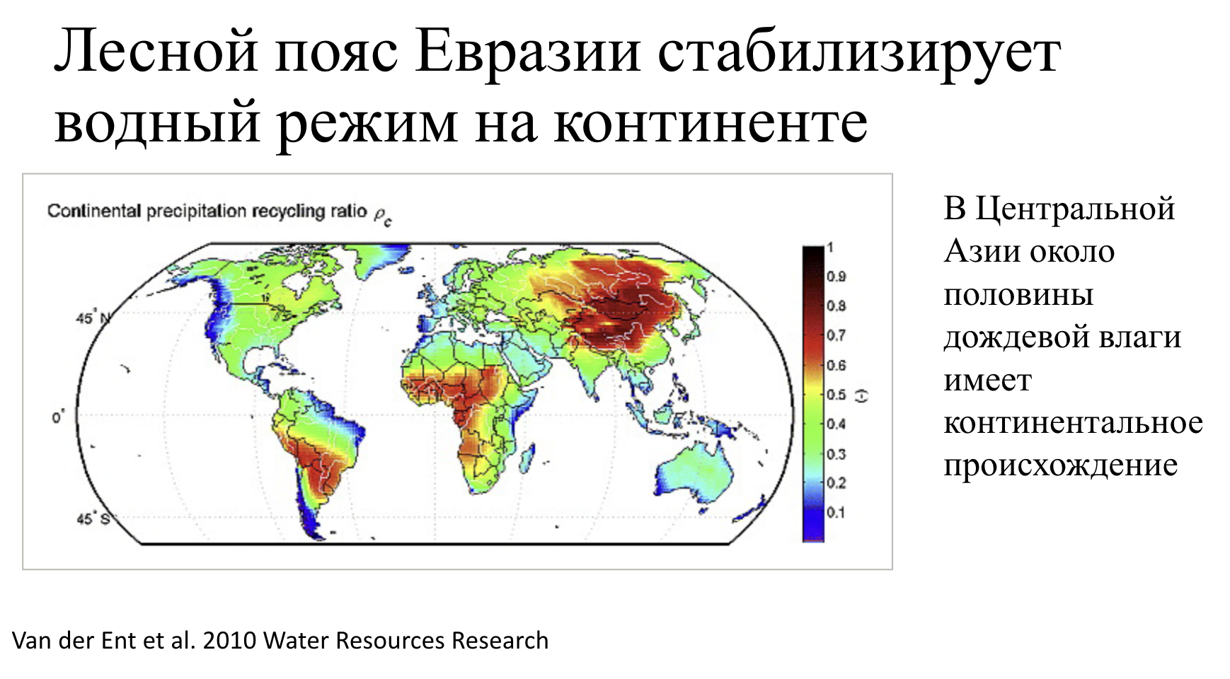 Евразийский лесной пояс (согласно научным оценкам и методам изотопного анализа источников и транспорта воды) обеспечивает до 50% дождевых осадков на территории Центральной Азии!